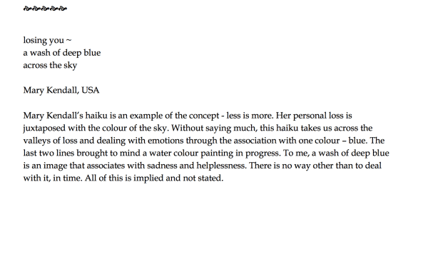 Published in Ekphrasis: The British Haiku Society Member’s Anthology, 2017: