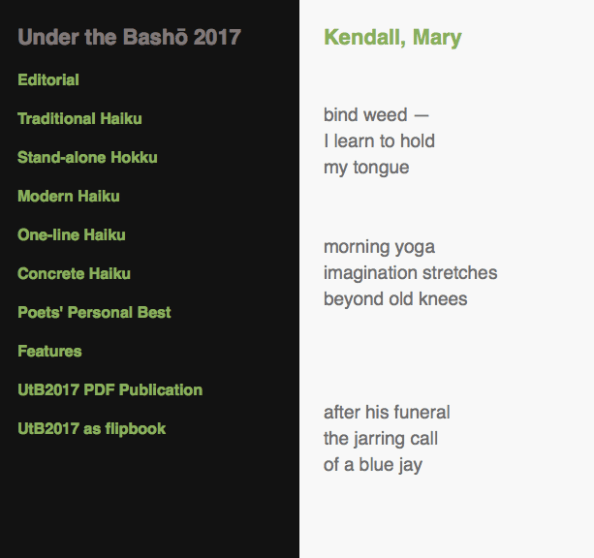 This part of my blog includes poems and places in which my work has been published in 2017. To make this readable, the newest poems are at the TOP of this page.