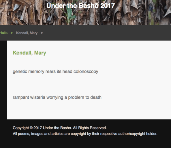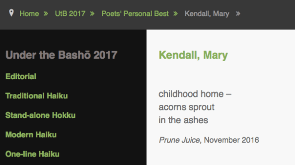 Published in Prune Juice, A Journal of Senryu, Kyoka,