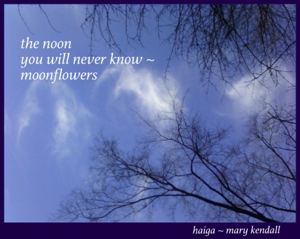 Noon… (a haiga) Posted on May 7, 2018 by Mary Kendall Published in Prune Juice, Journal of Senryu, Kyoka, Haibun & Haiga, Issue, 24, Spring 2018 Share this: Click to share on X (Opens in new window) X Click to share on Facebook (Opens in new window) Facebook More Click to print (Opens in new window) Print Click to email a link to a friend (Opens in new window) Email Like Loading...