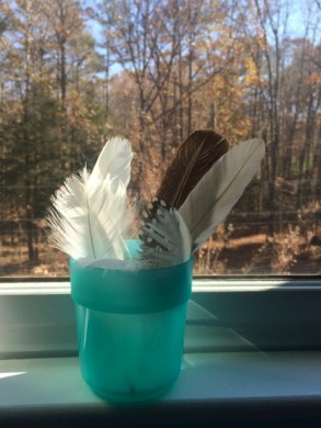 soft feathers drift out